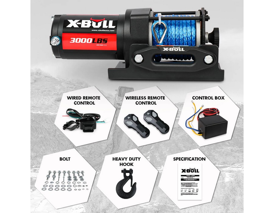 This X-BULL 3000lbs winch is an essential tool for any off-road ATV enthusiast, it is small, compact and very light, designed to steadily pull winch cable to assist in recovering vehicles, removing debris from the track or just as an assist across difficult terrain.